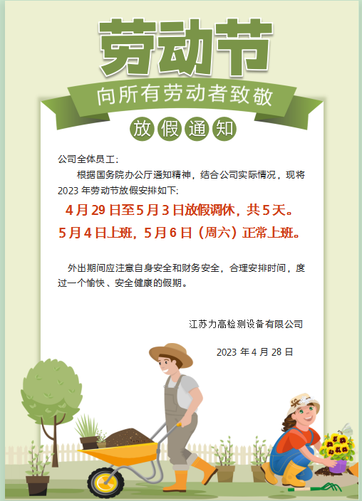 江蘇力高檢測設(shè)備有限公司五一勞動(dòng)節(jié)放假通知