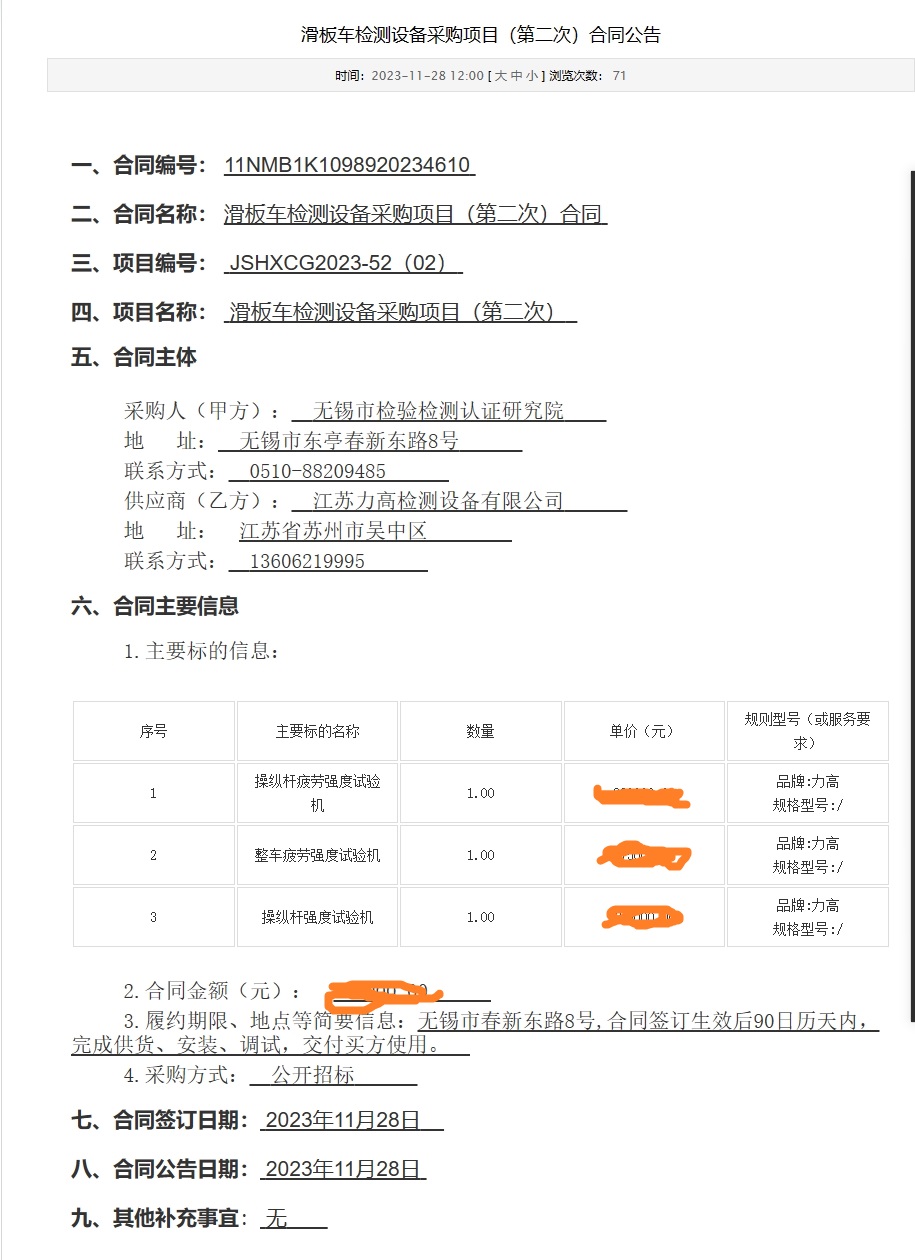 恭喜力高中無錫市檢驗(yàn)檢測(cè)認(rèn)證研究院 滑板車檢測(cè)設(shè)備采購項(xiàng)目