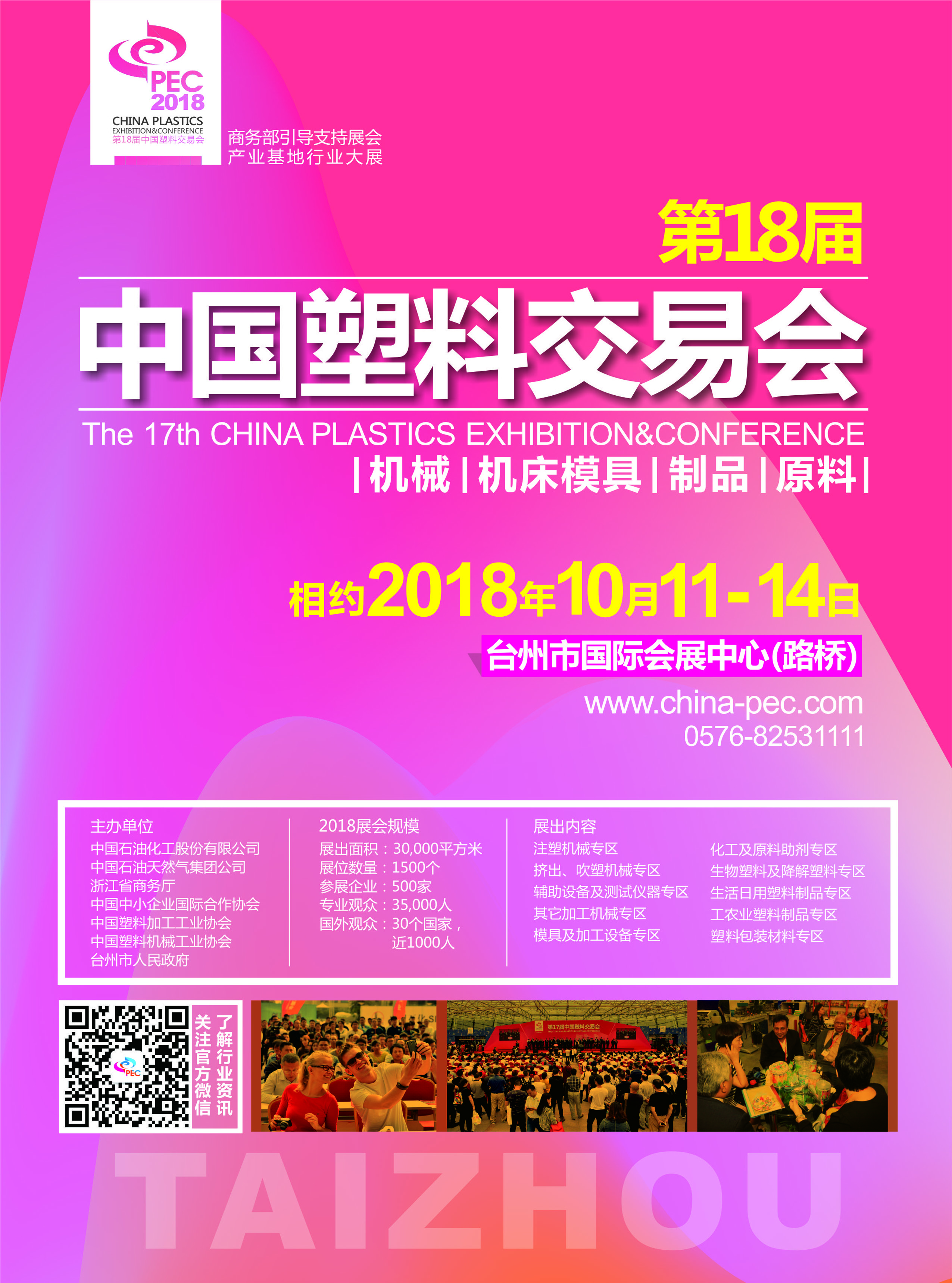 第十八屆中國塑料交易會設(shè)原料、機(jī)械、模具、制品四大展館,展覽面積約30000平方米,展位1500個,預(yù)計(jì)將有500家企業(yè)參展。展會同期舉辦一帶一路,合作共贏-智能制造中德高峰論壇。